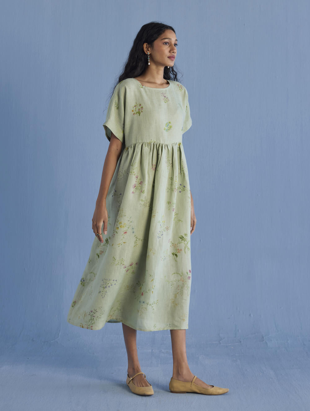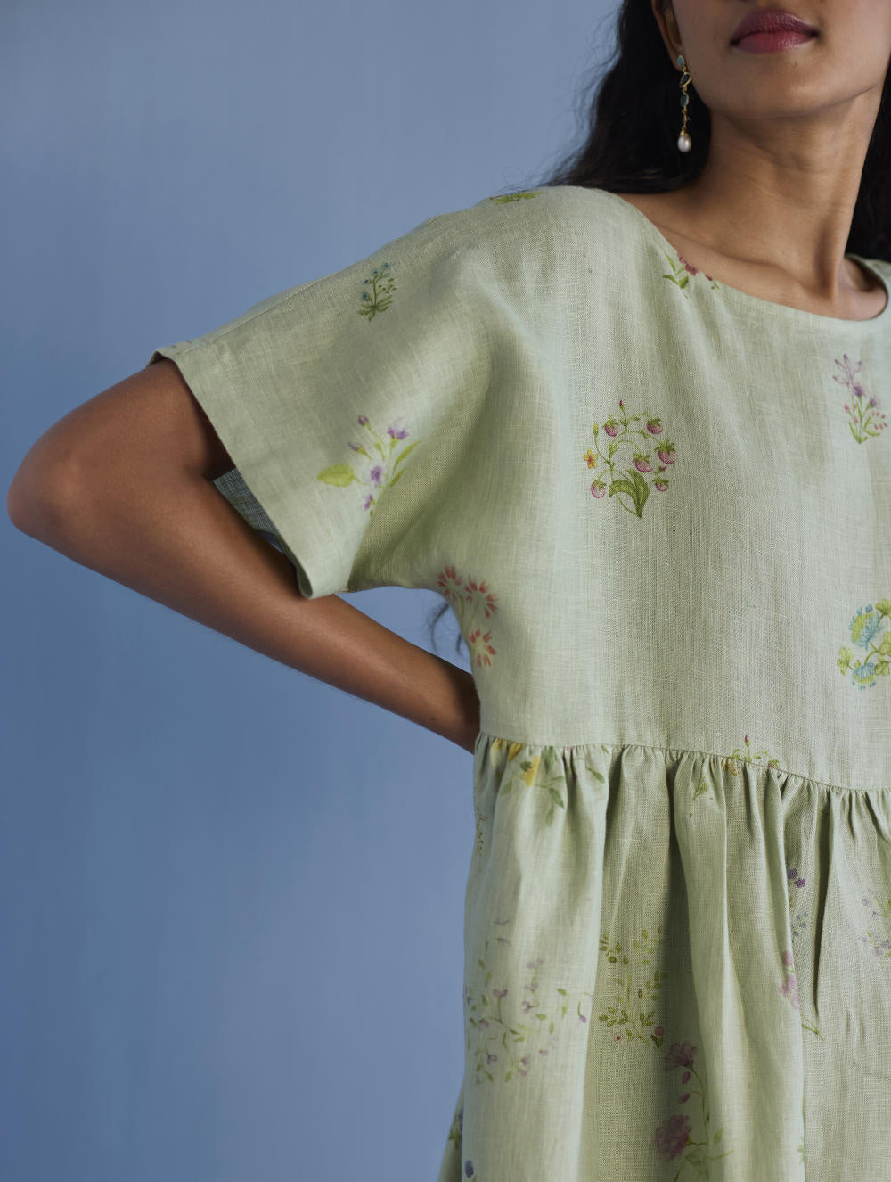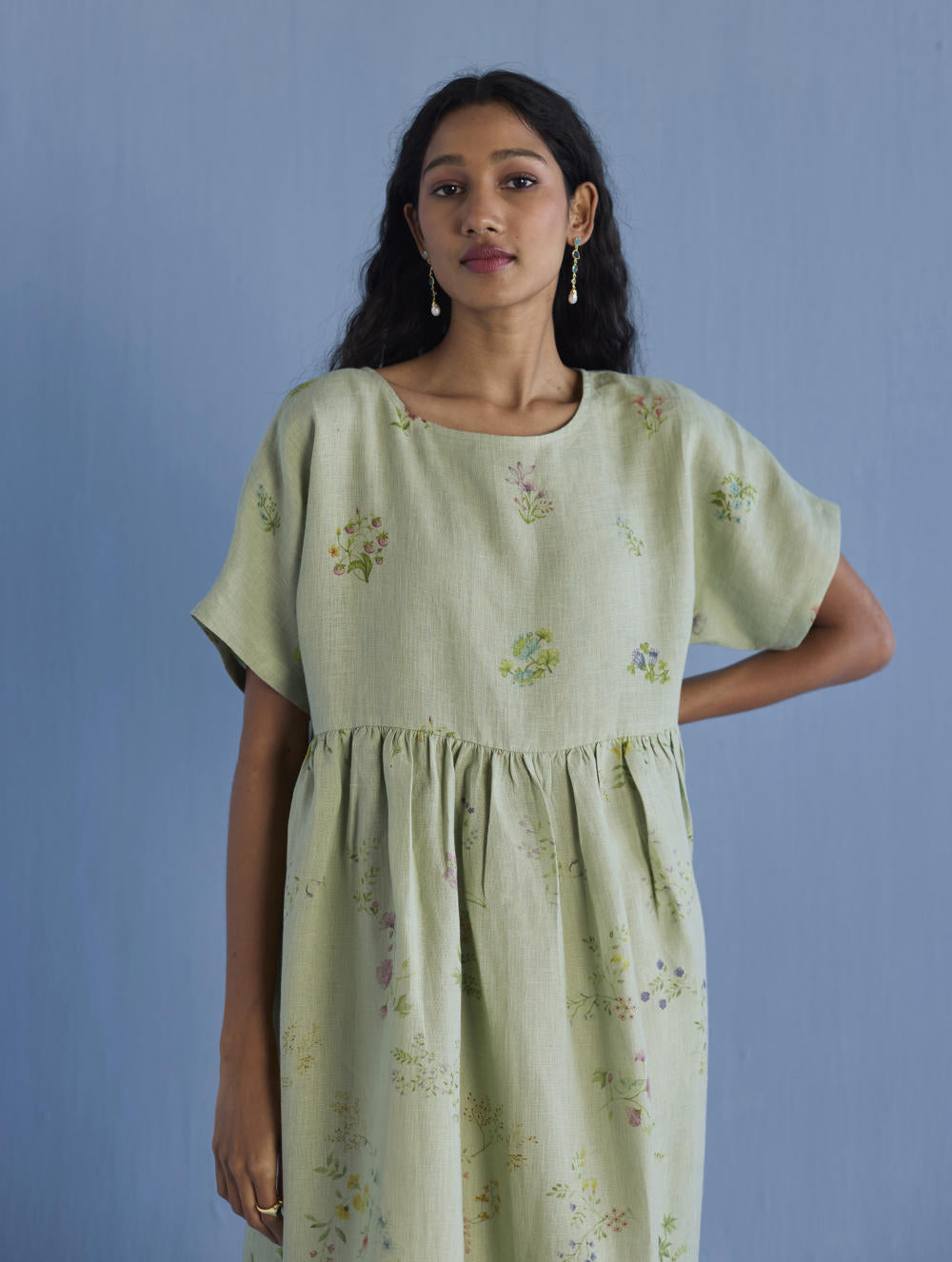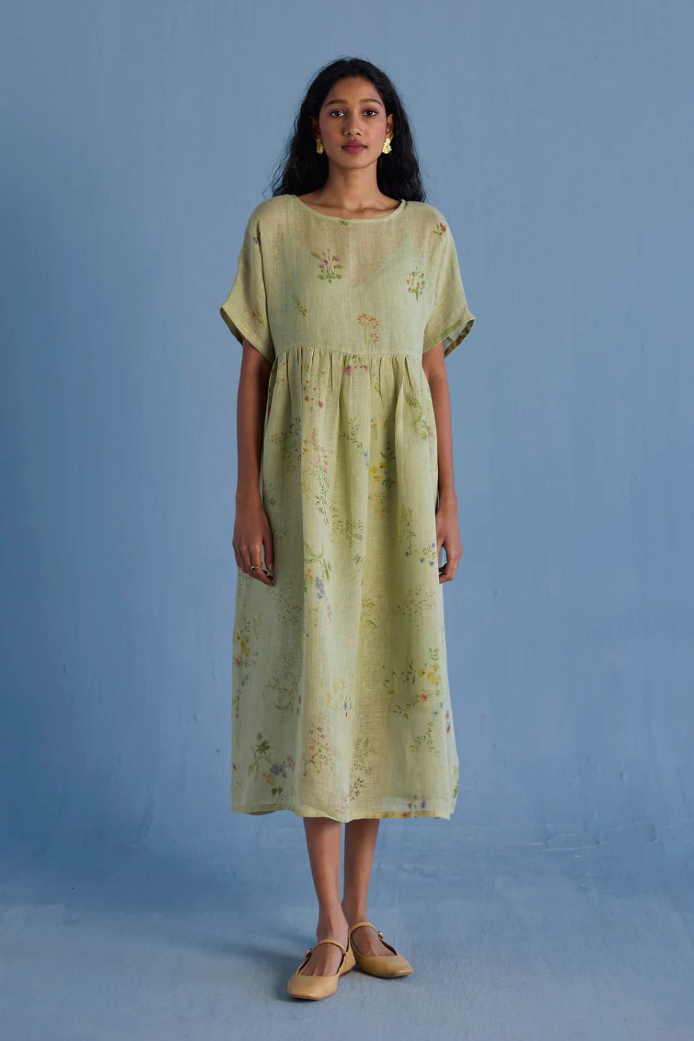 A timeless and easy-to-wear soft sheer linen dress designed with a soft timeless hand-painted floral print, pockets and intricate pleat details at the back for easy movement and style. The dress can be worn over any plain linen or cotton dresses that are part of your wardrobe. Perfect for balmy summer days.