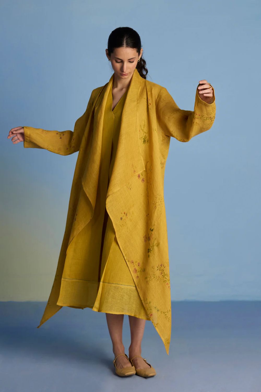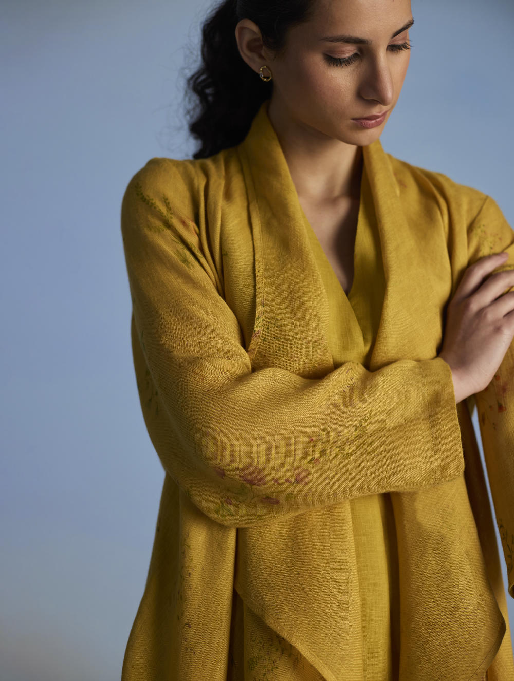 Their signature linens soften beautifully with time, eventually returning to the earth. They work with eri (ahimsa) silk, celebrated for its strength and gentle texture, and craft thoughtful blends of viscose, cotton, silk, and linen for pieces designed to last. Yarn-dyed techniques minimise chemical use and create the subtle, heathered tones that have become a quiet Manan signature.