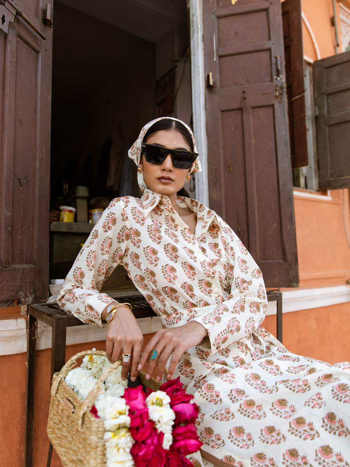 "Ilahi - Jaipur inspired patterns in the softest cottons and breeziest silhouettes help set your heart free. Feel the wanderlust within you as you embrace our looks for the perfect summer. Summer shirt dress of your dreams, printed to perfection with a comfortable midi length.