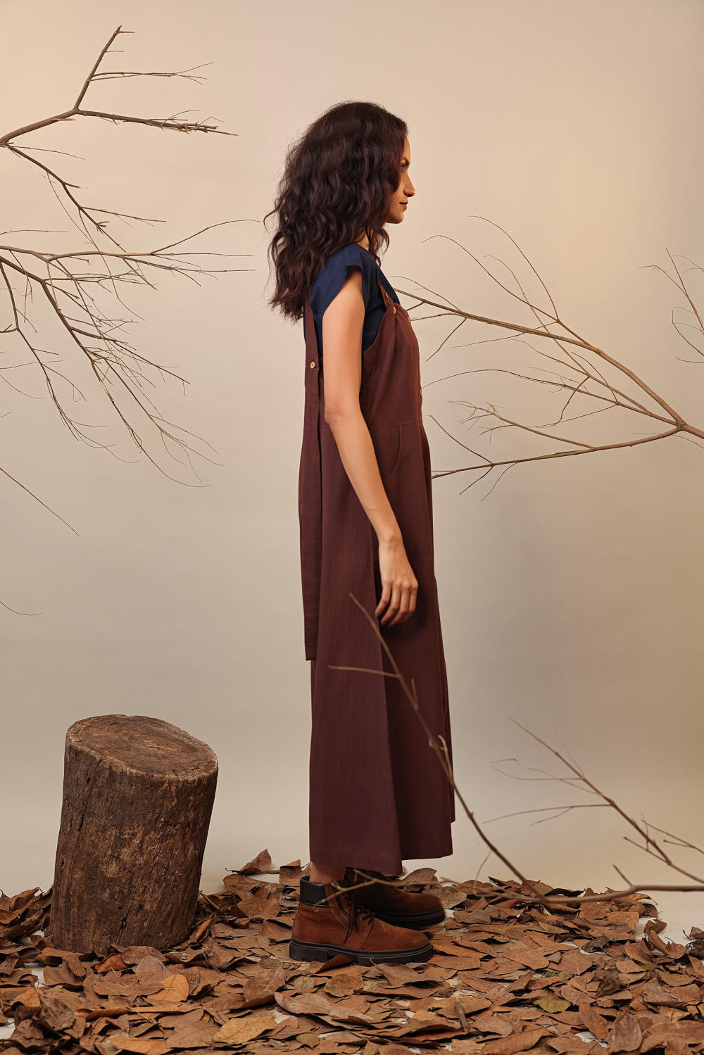 Strap dungarees with adjustable buttons on the straps. Made in handspun cotton comes with side pocket. Team it up with any contrast crop top from the collection to complete the look.