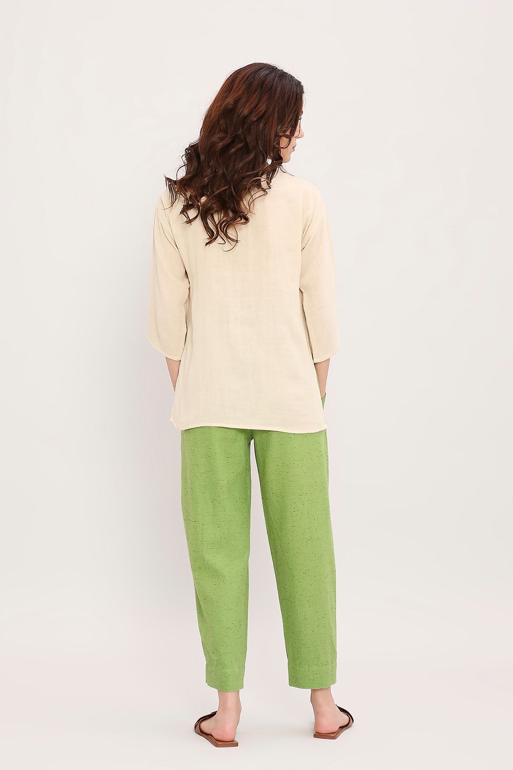 Textured handwoven cotton pants with fully elasticated waist and draw strings for adjustments. Team it up with the Embroidered top or tunic from this collection and complete the look.