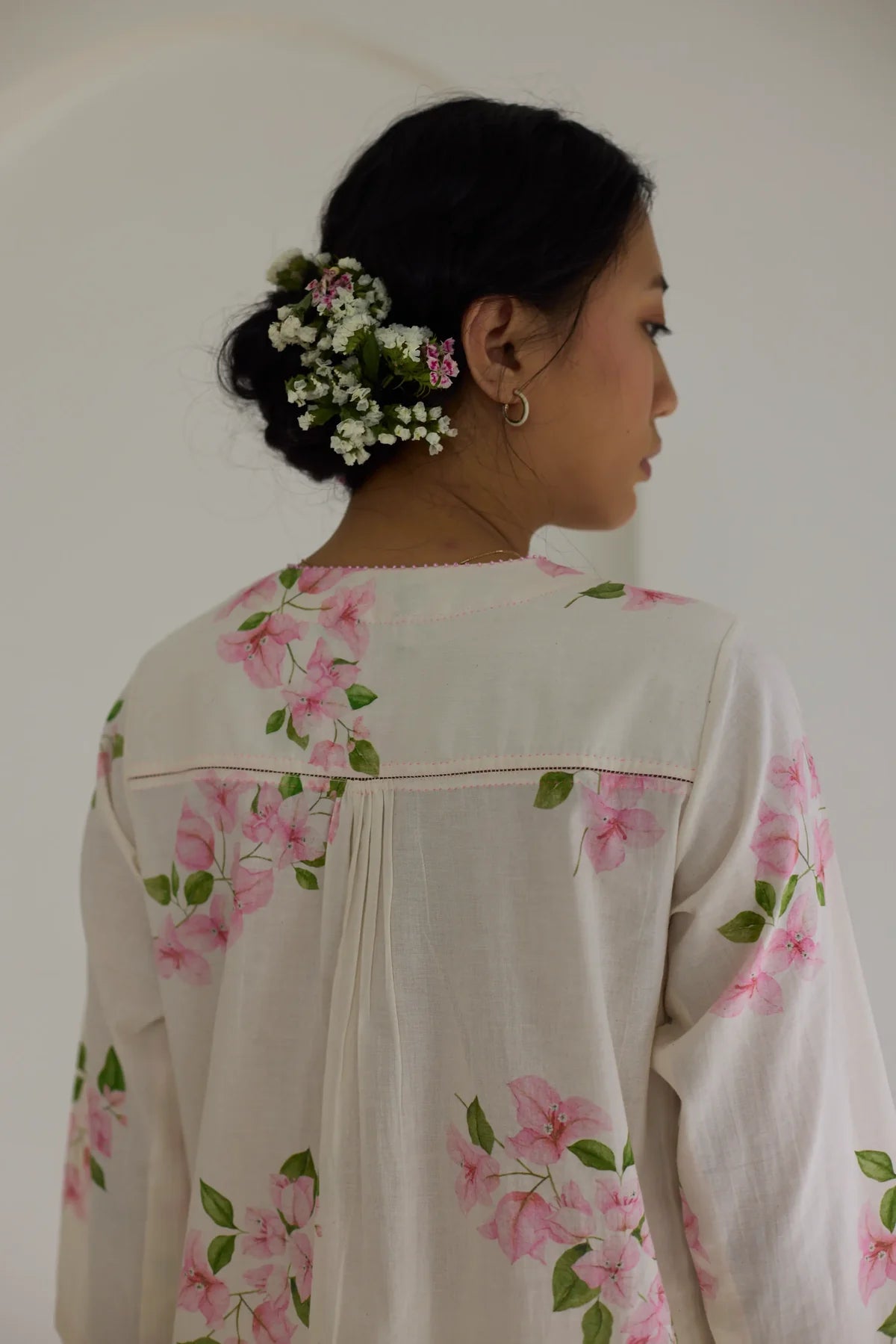 Our ever-loving Bougainvillea print reminds us of bright, sunny days evoking nostalgia. Muted hues give a sense of joyfulness and exuberance that celebrates life’s moments.