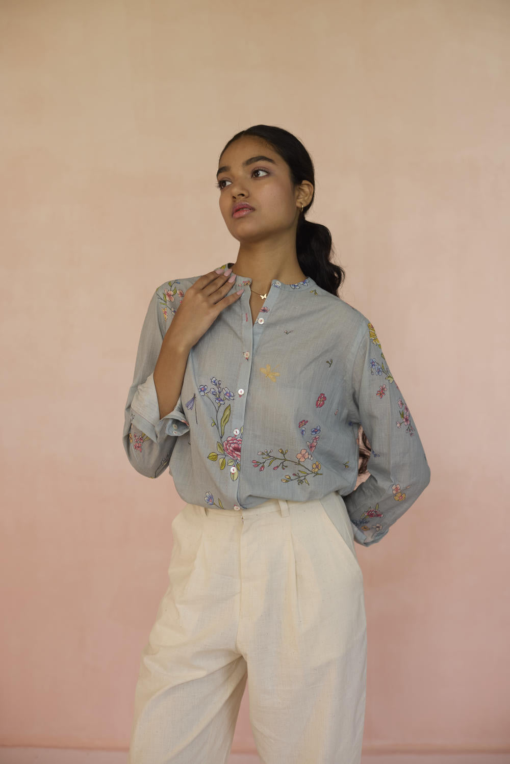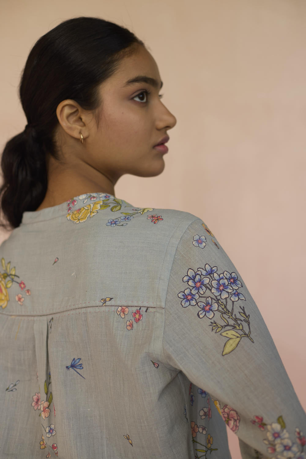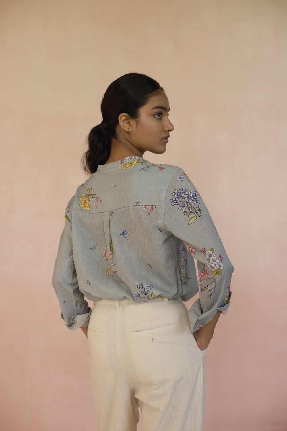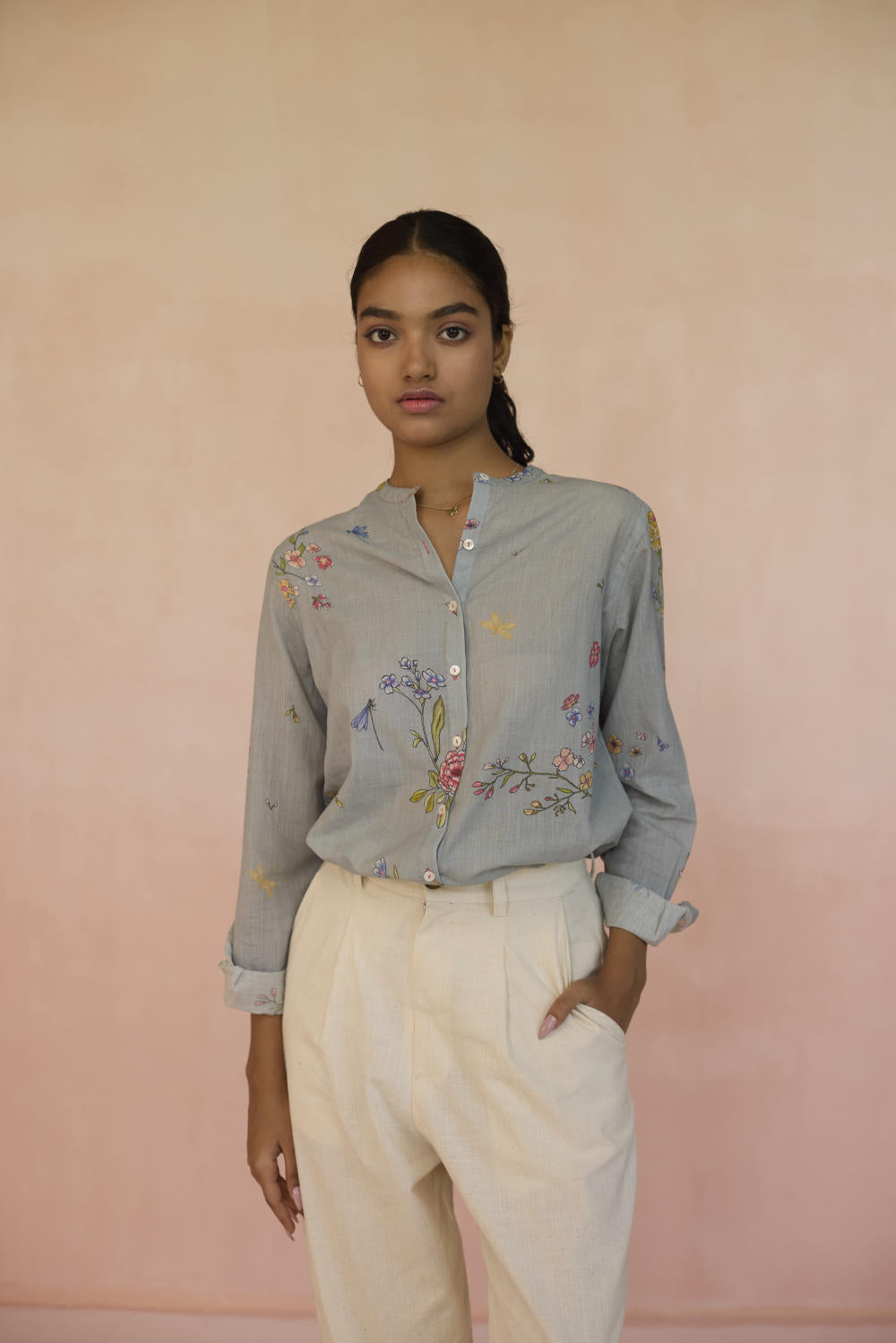 The Garden shirt has an exquisite range of flowers. With a bouquet of flowers from the garden carefully applied in pattern that showcases the flowers in full summer bloom. The band collared shirt is made with 100% handspun, handwoven cotton that lends grace and form to the fabric. Hand-sewn shell buttons and hand-swen seams adds a touch of individuality. The soft, yet durable cotton drapes effortlessly, offering comfort without compromising on style. Designed for effortless wear, makes it a go-to choice for daily wear.
