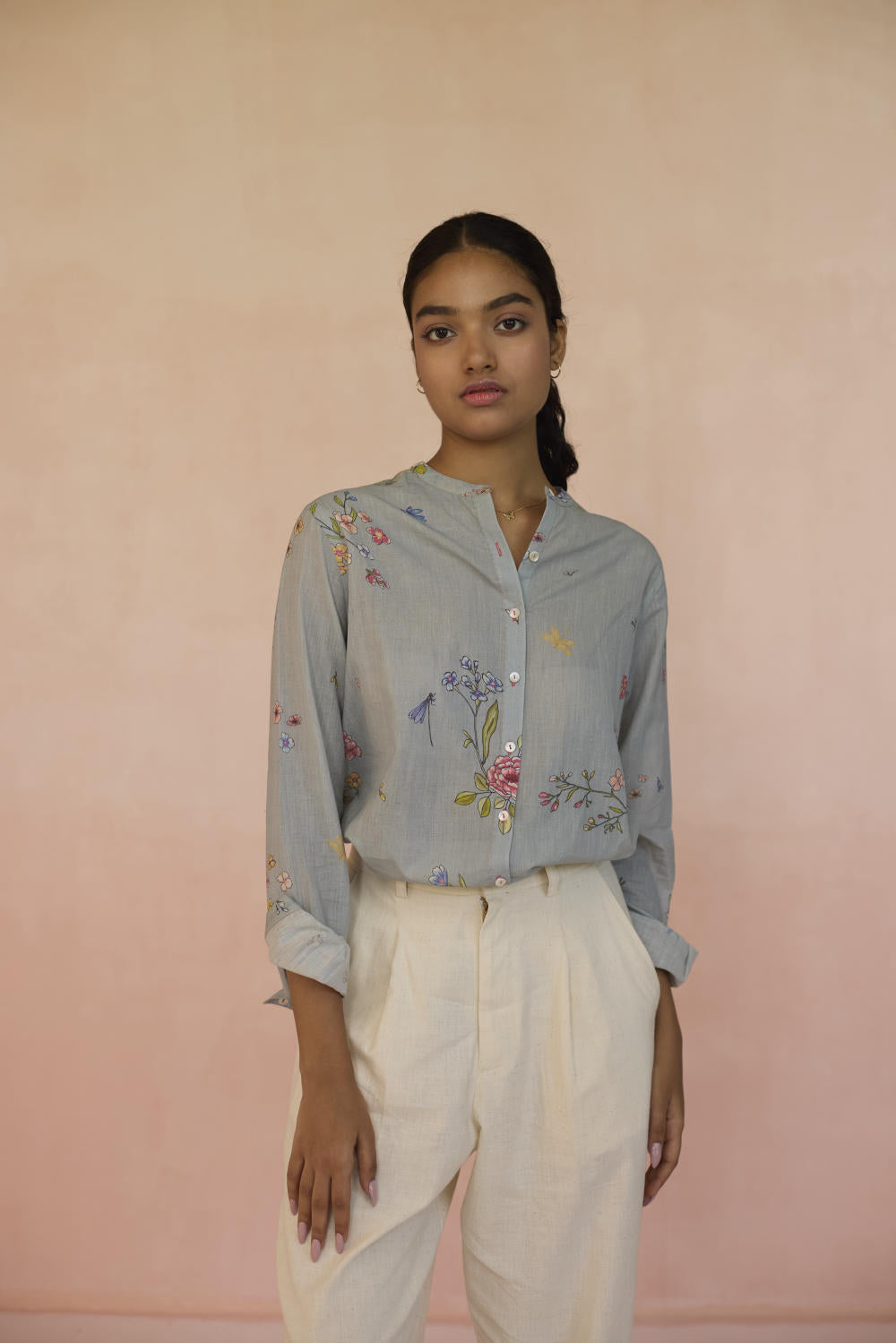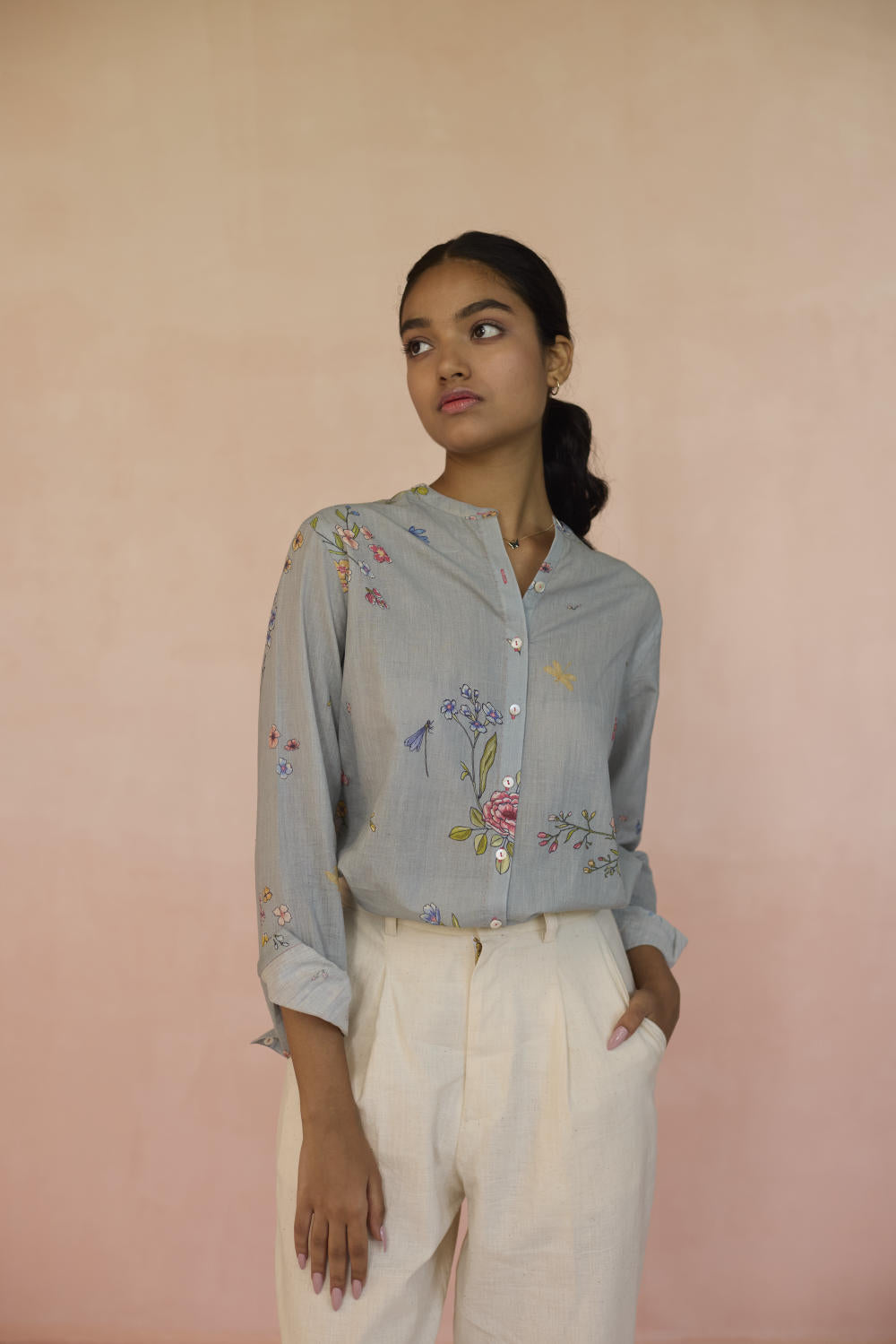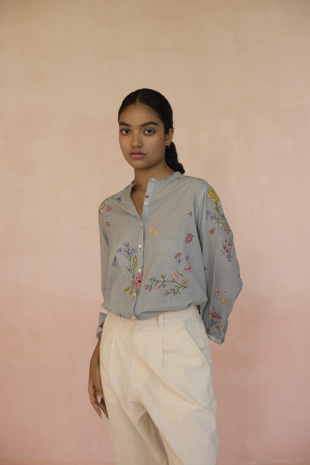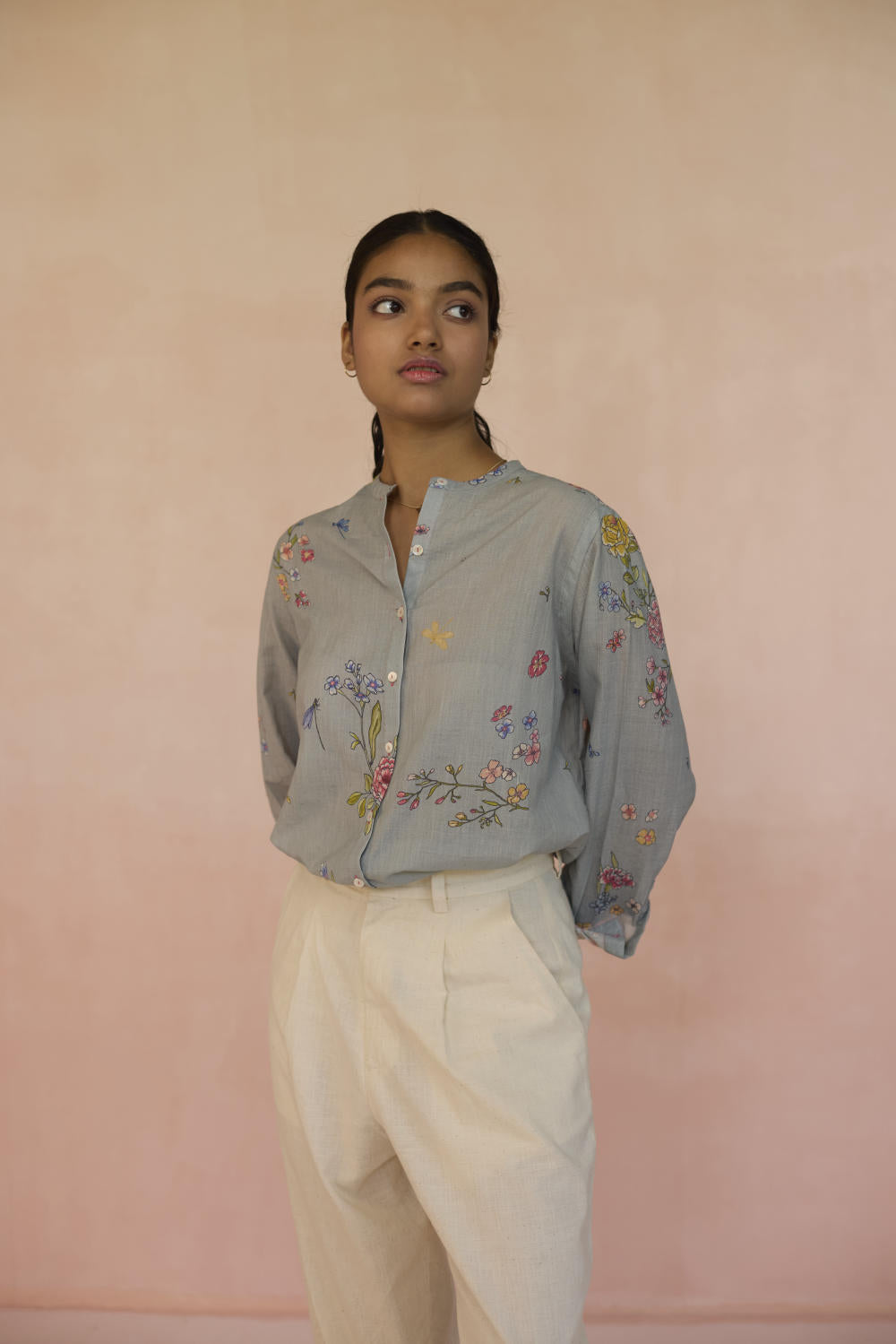 The Garden shirt has an exquisite range of flowers. With a bouquet of flowers from the garden carefully applied in pattern that showcases the flowers in full summer bloom. The band collared shirt is made with 100% handspun, handwoven cotton that lends grace and form to the fabric. Hand-sewn shell buttons and hand-swen seams adds a touch of individuality. The soft, yet durable cotton drapes effortlessly, offering comfort without compromising on style. Designed for effortless wear, makes it a go-to choice for daily wear.