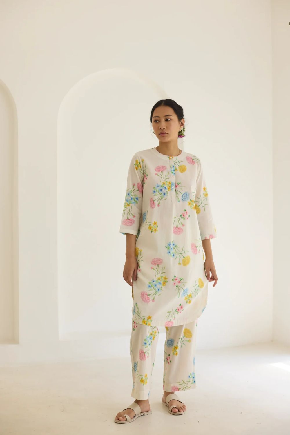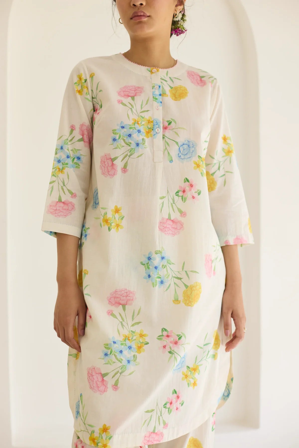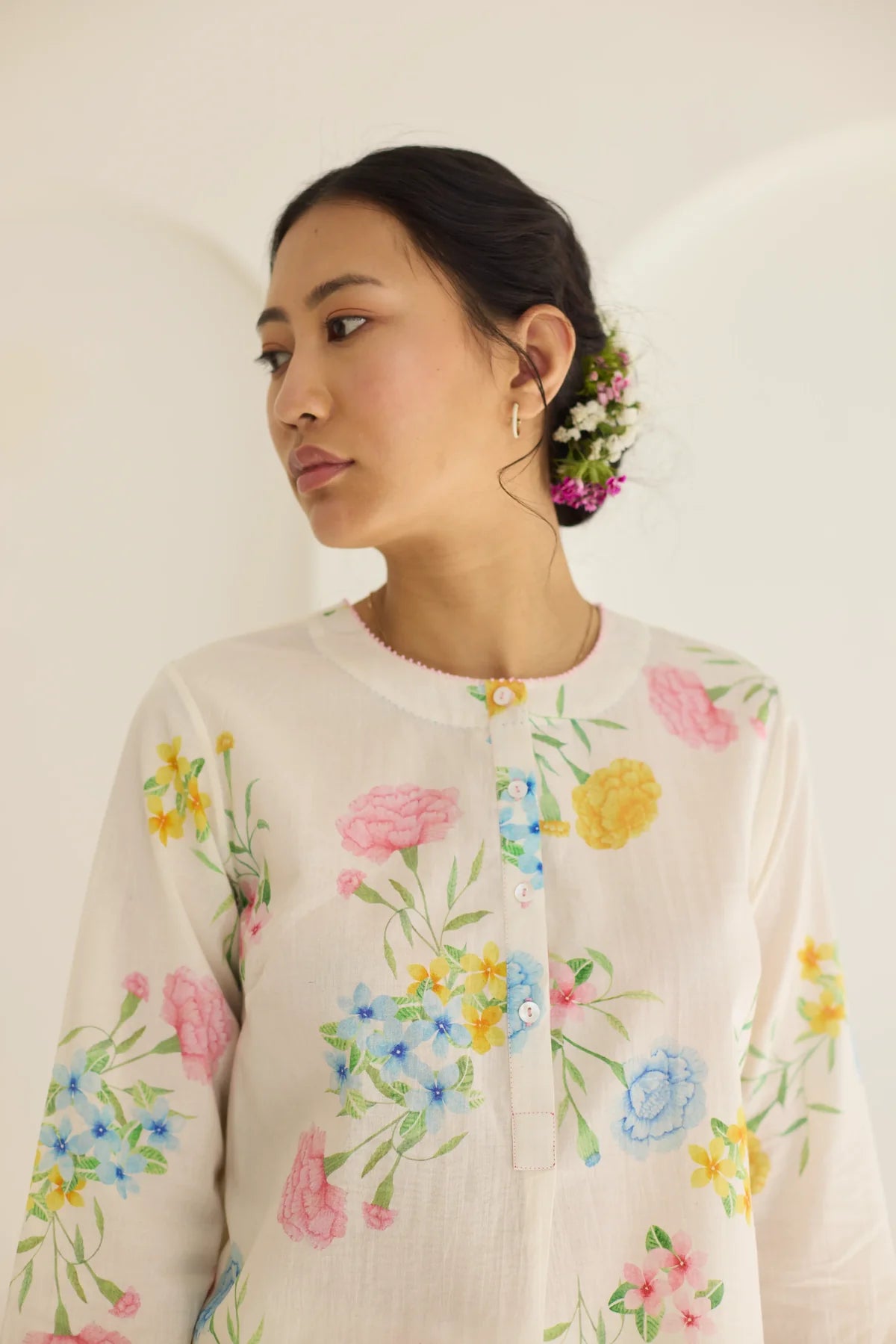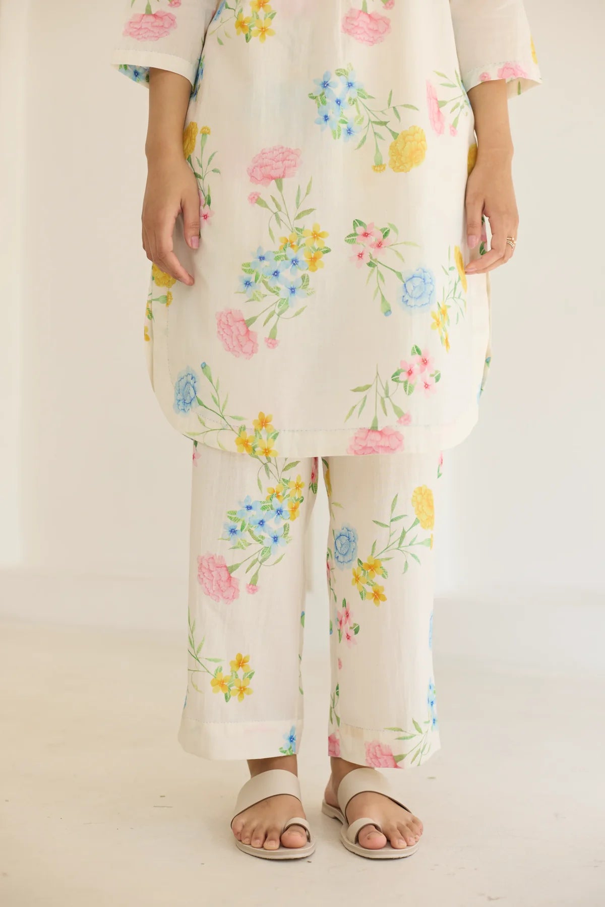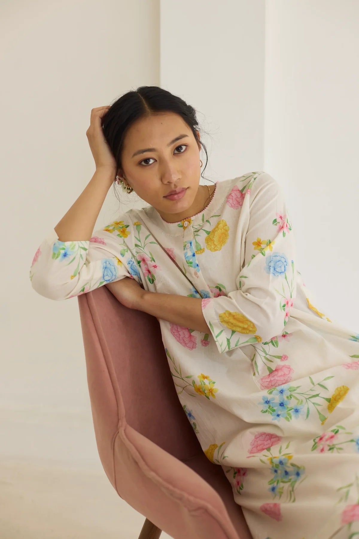 Their prints—hand-illustrated by artists who study flora with almost meditative devotion—carry the softness of garden blooms, the whimsy of wildflowers, and the quiet romance of flowering trees. Each motif is rendered with care, arranged in patterns that feel thoughtful and deeply personal. No loudness, no clutter — just beauty distilled into its purest form.