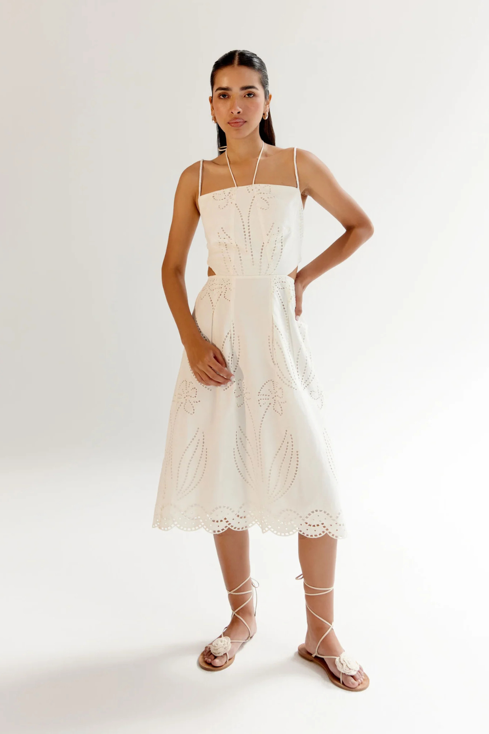 Perfect for warm-weather occasions, the Ariel Midi pairs effortlessly with sandals for a daytime outing or heeled mules for a chic evening look. Its flowing silhouette and thoughtful details make it a versatile addition to your summer wardrobe, blending comfort and sophistication seamlessly.