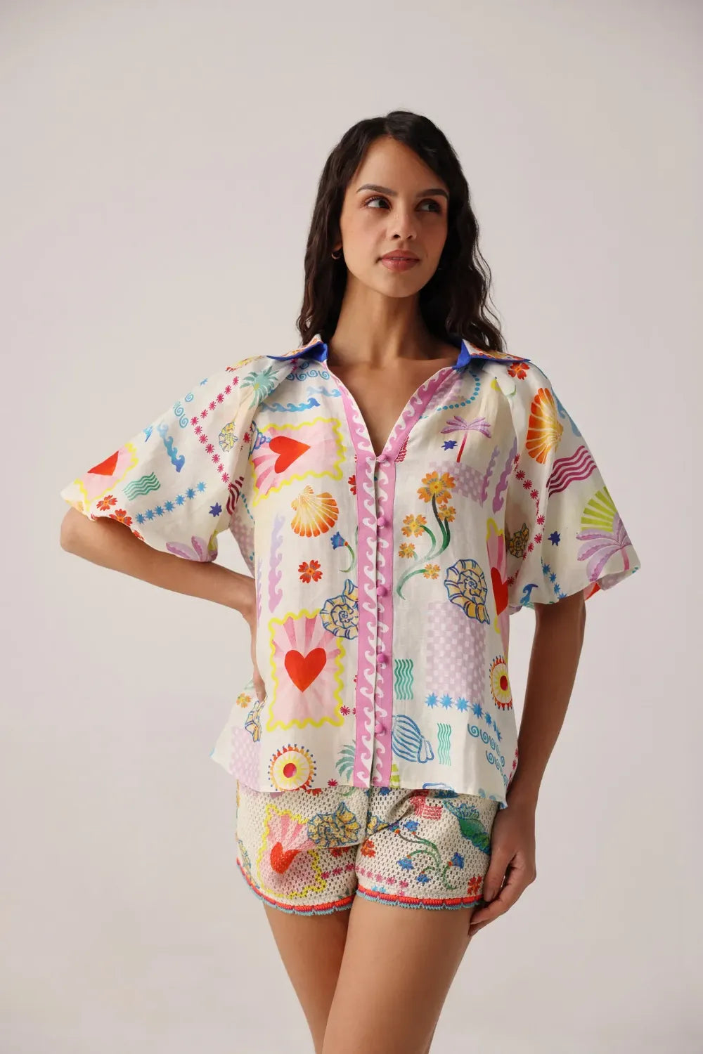 Crafted in viscose-linen with placement print detailing