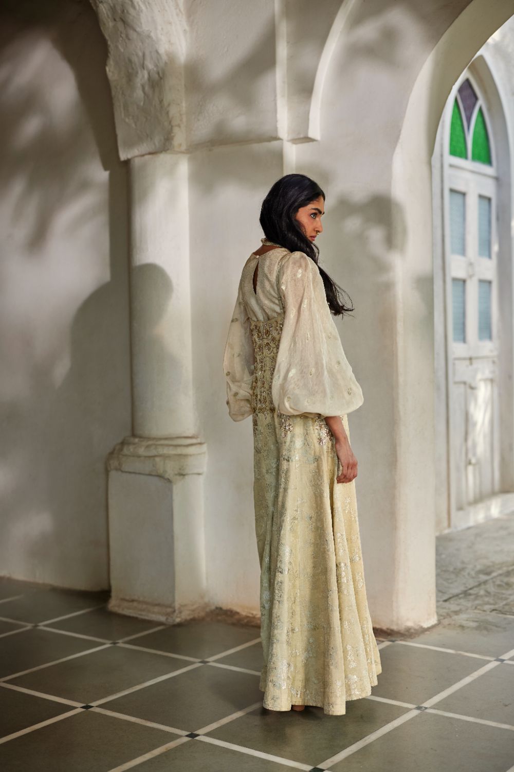 Every collection begins long before the garment is stitched: months of research into India’s rich craft traditions, followed by the painstaking creation of detailed illustrations. These artworks are then scanned, enhanced with jewel-toned palettes and touches of rich gold, and finally translated onto fabric. The result is a visual language so distinct that their name has become synonymous with print, colour, and the kind of glamour that still feels feather-light.