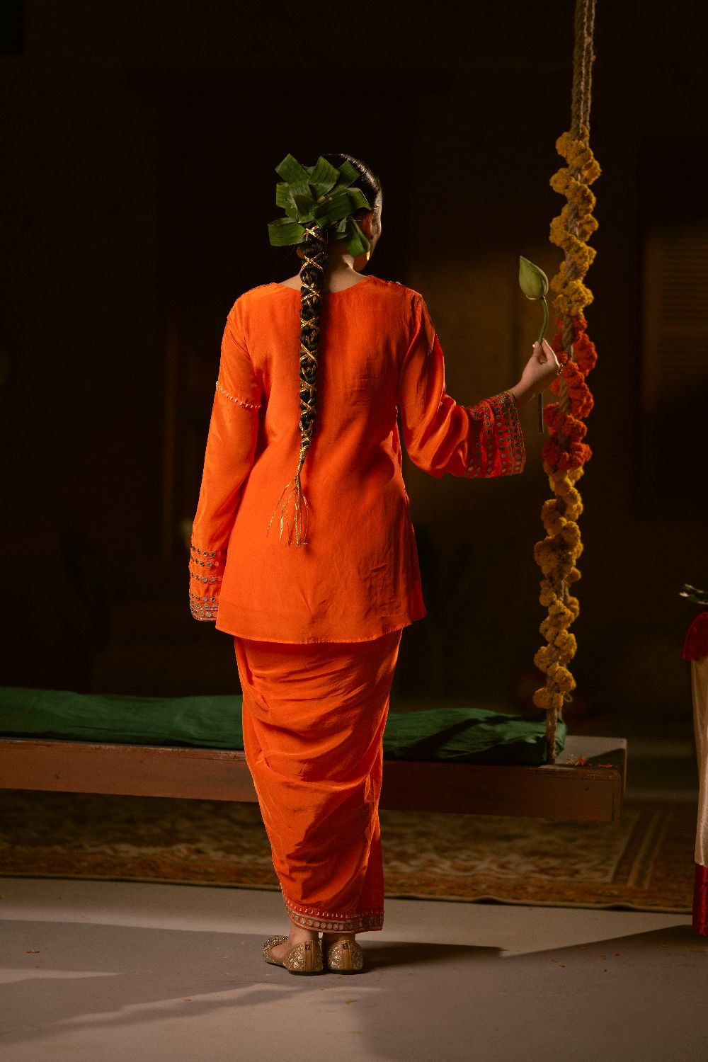 Perfect for festive occasions and contemporary celebrations this structured tunic jacket offers a tailored yet comfortable fit, while the flowing pleated skirt adds movement and grace, creating a harmonious, chic silhouette. Ideal for weddings, parties, and curated cultural events. Model wears size S.