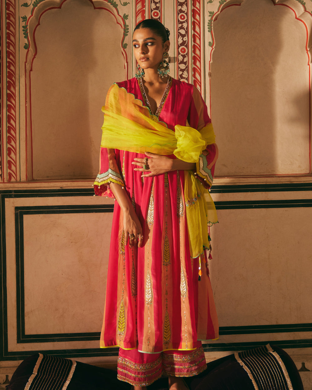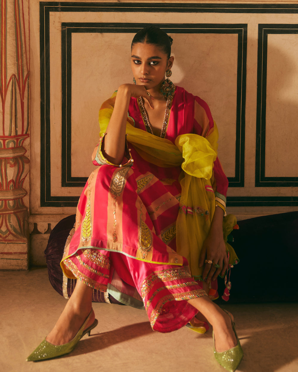 Their work is an ode to handcrafted Indian design — rooted in traditional embroidery techniques like zardozi, dabkaa, and fine threadwork, yet shaped into silhouettes that feel refreshingly contemporary. Clean cuts, relaxed forms, pure fabrics, and a distinctive palette come together to create pieces that travel seamlessly from India to Singapore and beyond.