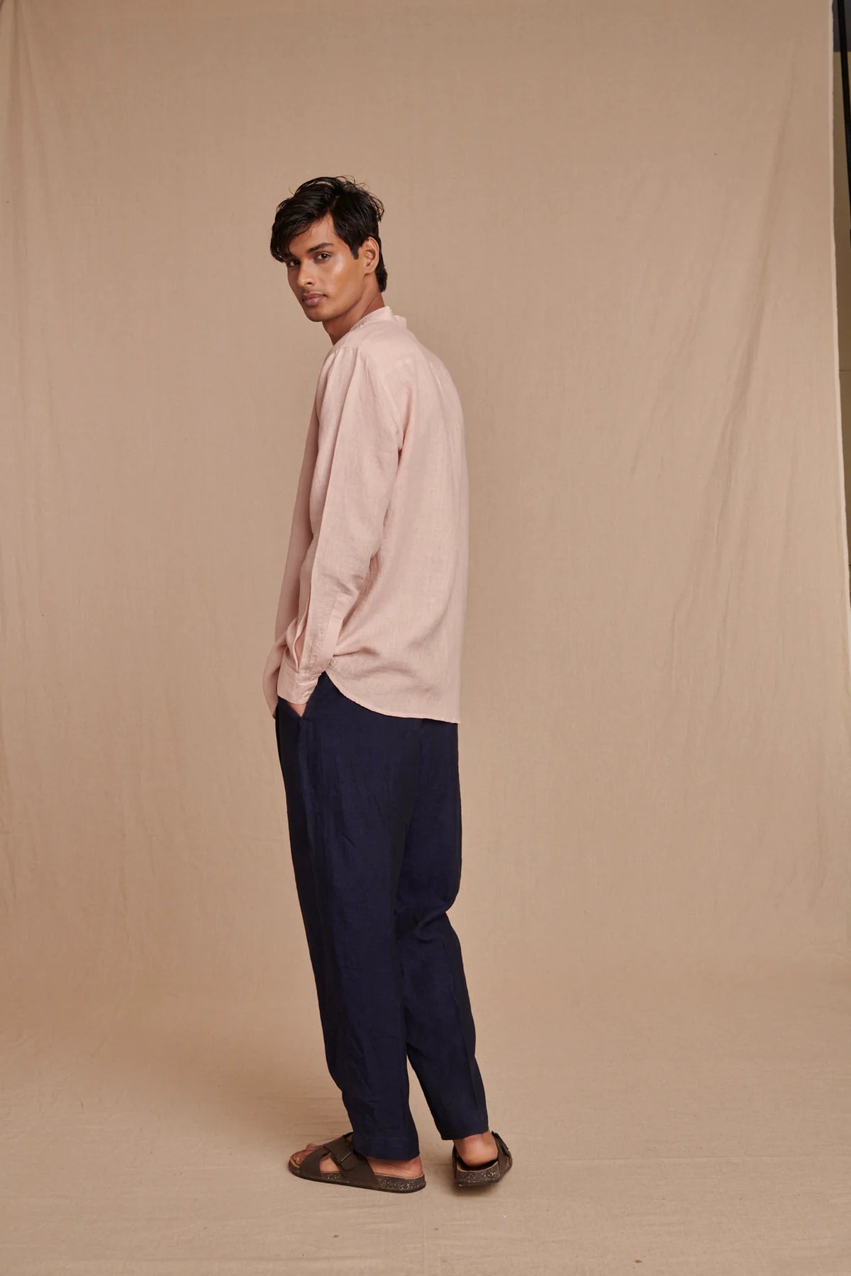 Designed for everyday ease, this regular fit shirt is tailored from 100% pure linen with a band collar and a relaxed silhouette. Lightweight, breathable, and made for unhurried days — it’s finished with mother-of-pearl buttons and a gently curved hem for understated structure.