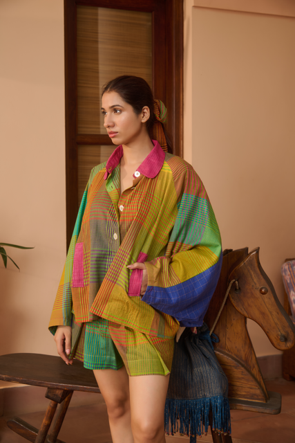 Handwoven Yarn Dyed Silk/Cotton and Patchwpork Jacket With 100% Cotton Linning.