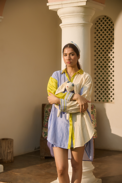 Swatti’s design language is anchored in India’s most storied textiles — Chanderi, handwoven cotton, and hand block-printed fabrics — yet her approach is unmistakably contemporary. She doesn’t simply use these textiles; she interprets them. She listens to their history, then rewrites their place in the modern wardrobe.