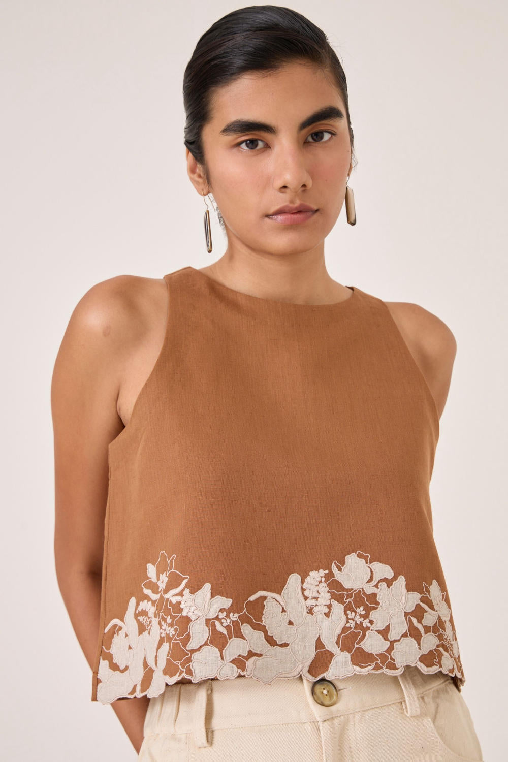 - Sleeveless short top