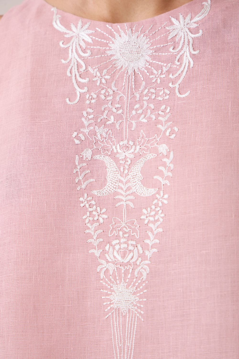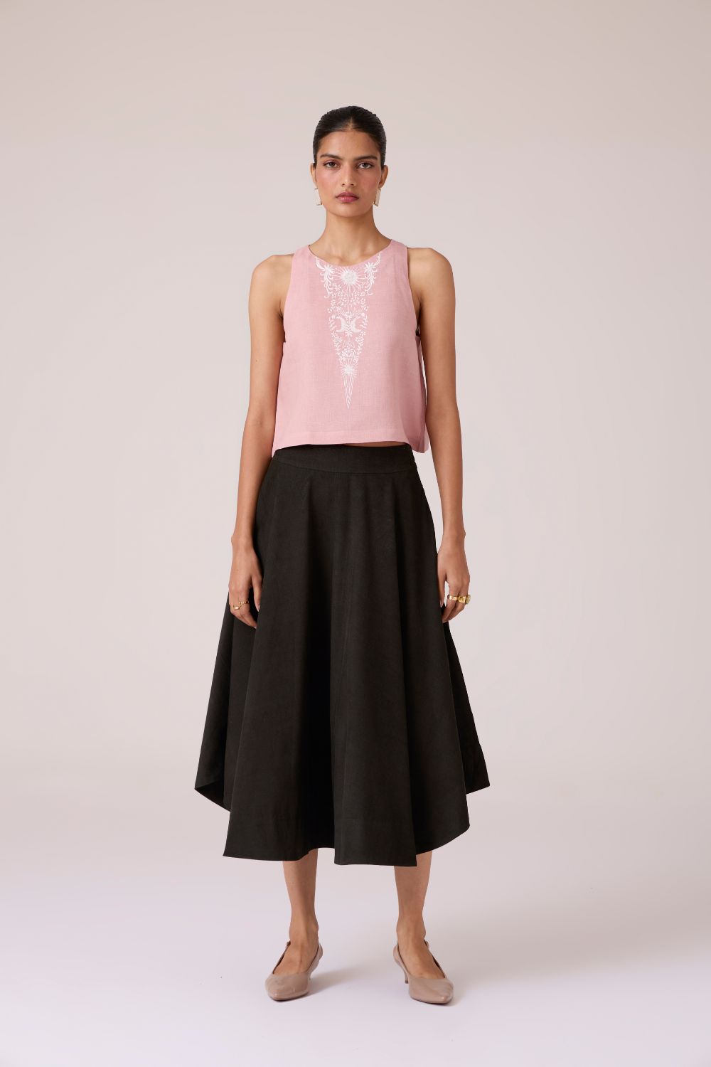 Light, spare, essential. Embroidery softens the clean cut of this sleeveless top, making it equally at home with sari drapes or high-waist trousers.