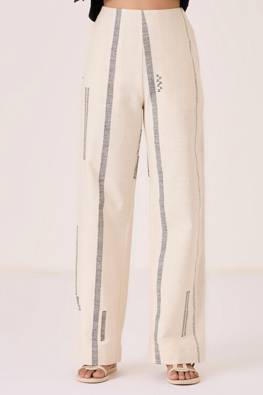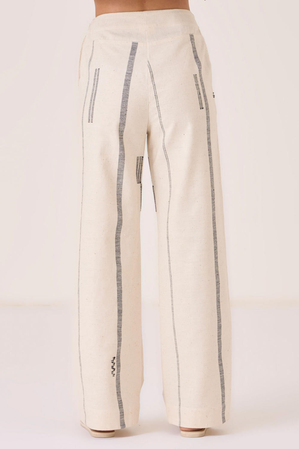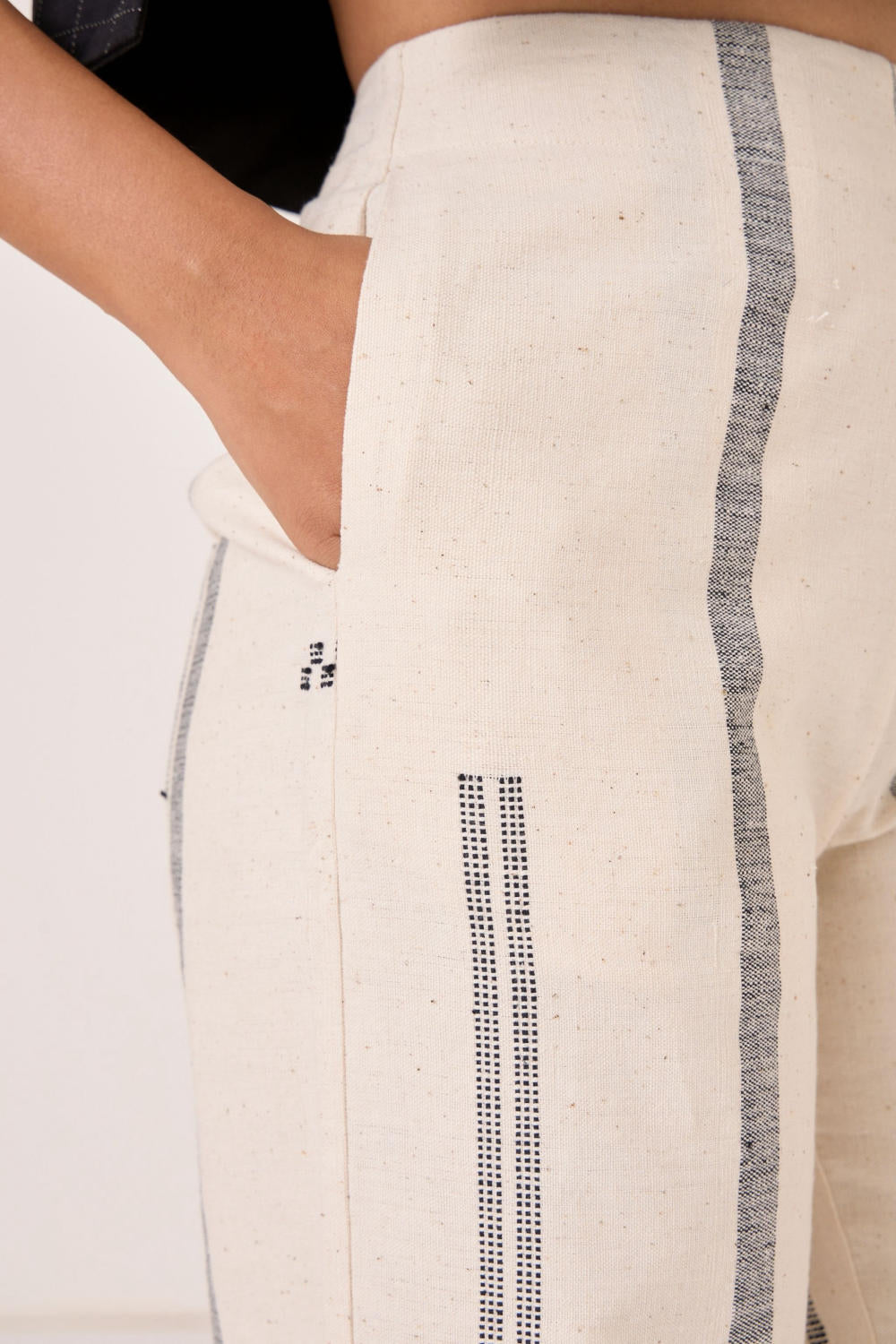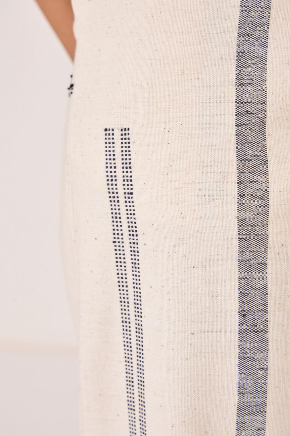 This signature weave has been developed in our studio and handwoven by artisans in Kutch. Slight irregularities are inherent and speak to the hand processes involved.