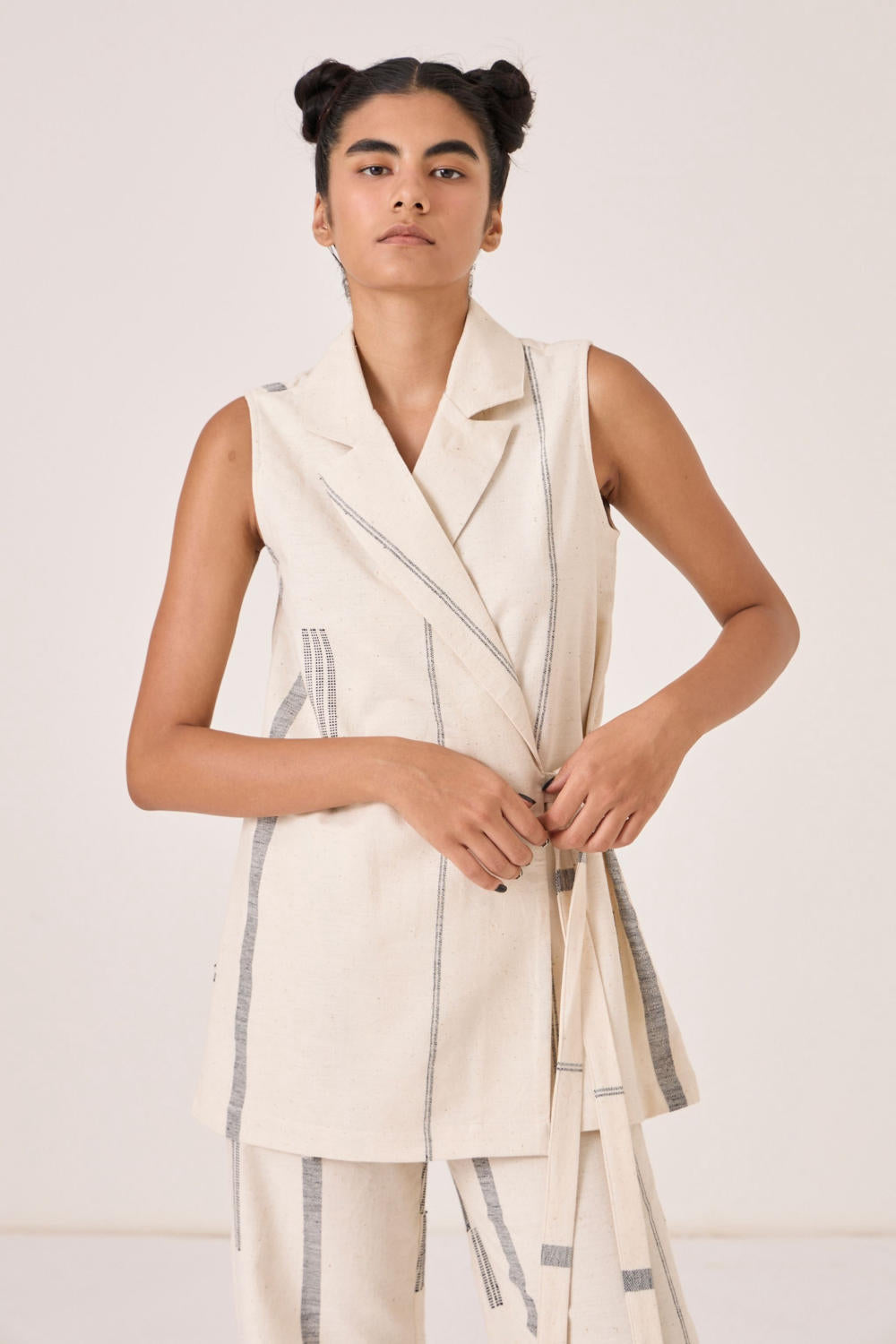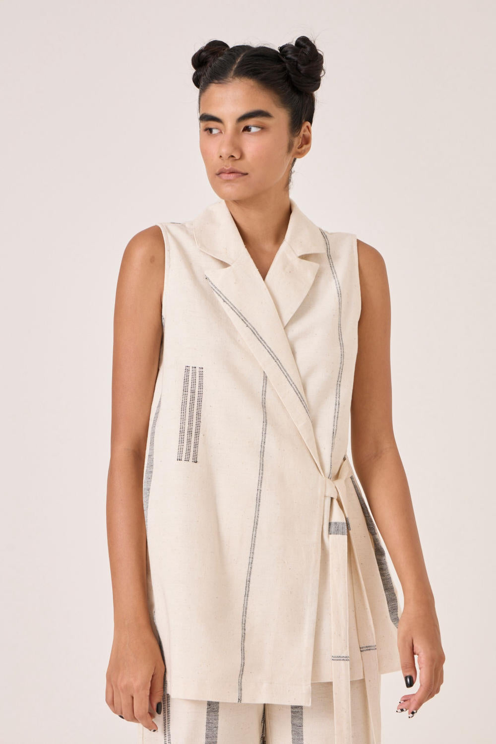 - Sleeveless wrap jacket