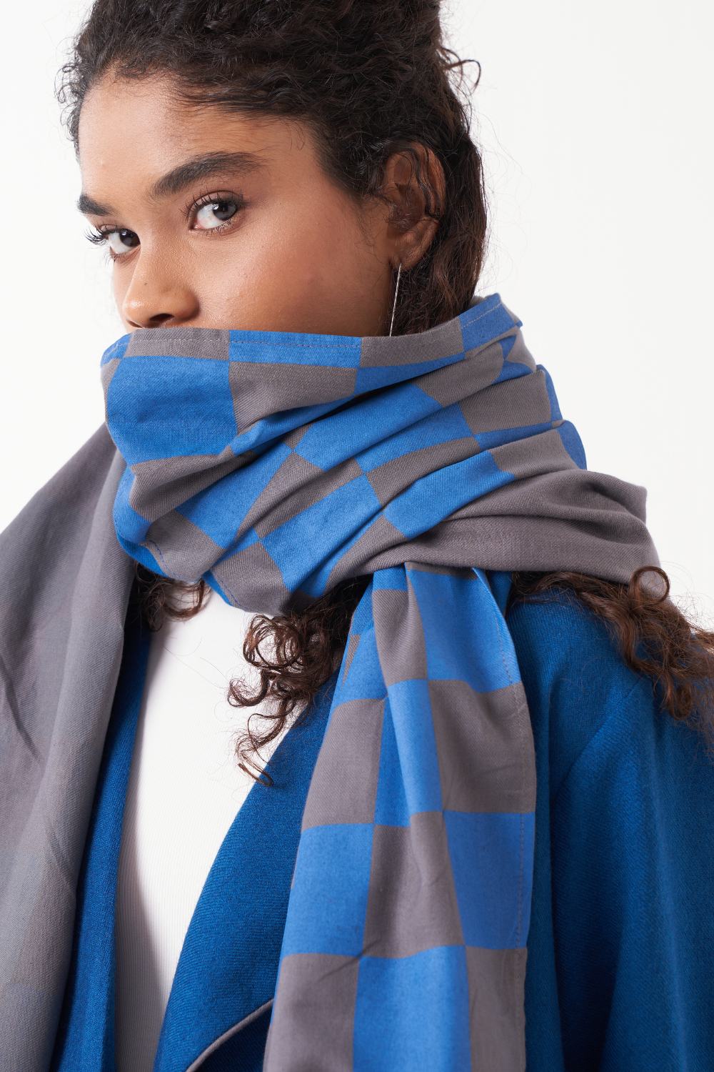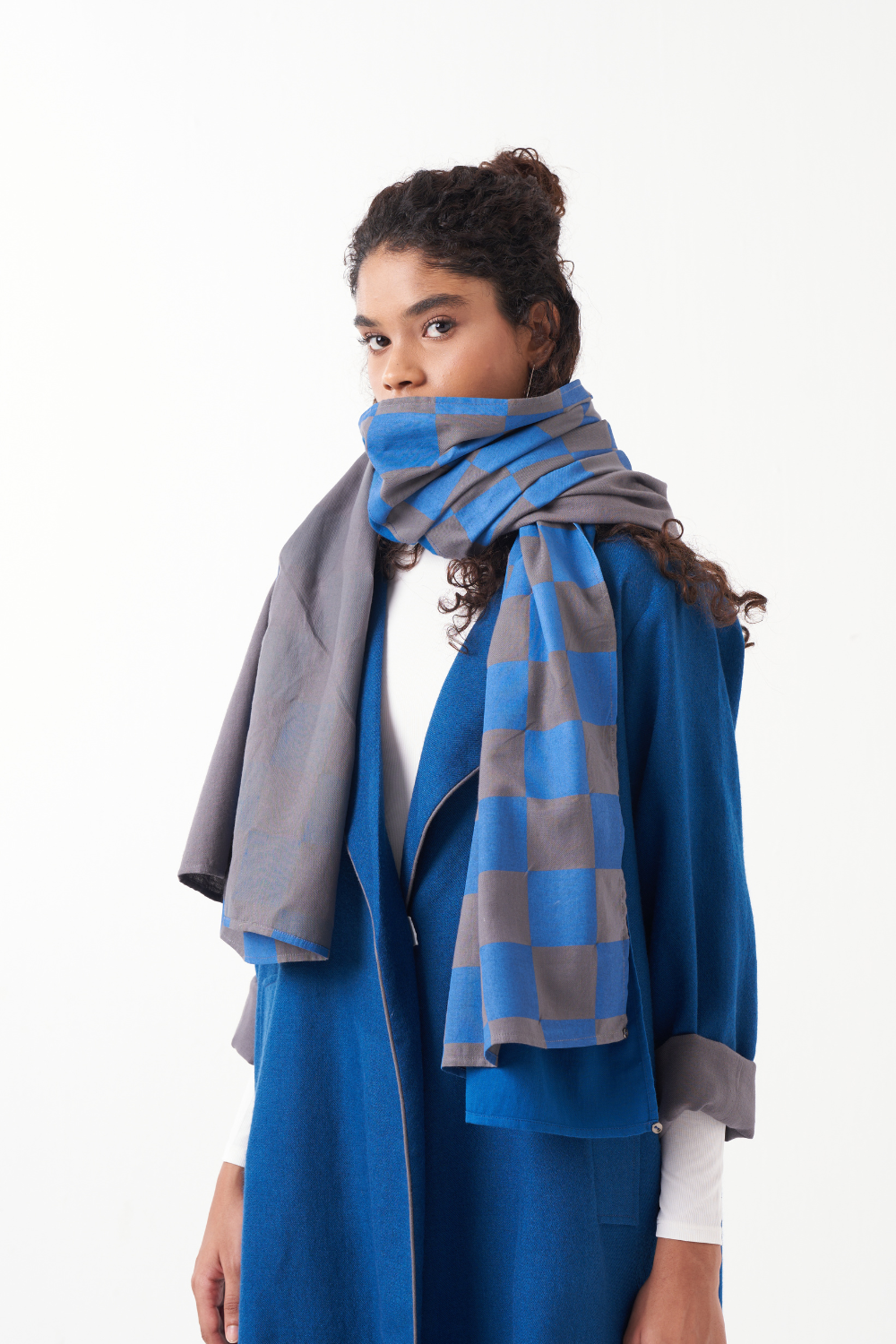 SCARF : GREY & ELECTRIC BLUE