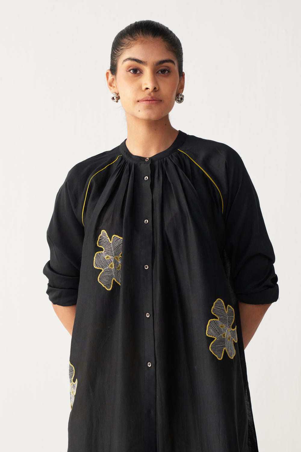 Floral Emb. Gather Neck Shirt