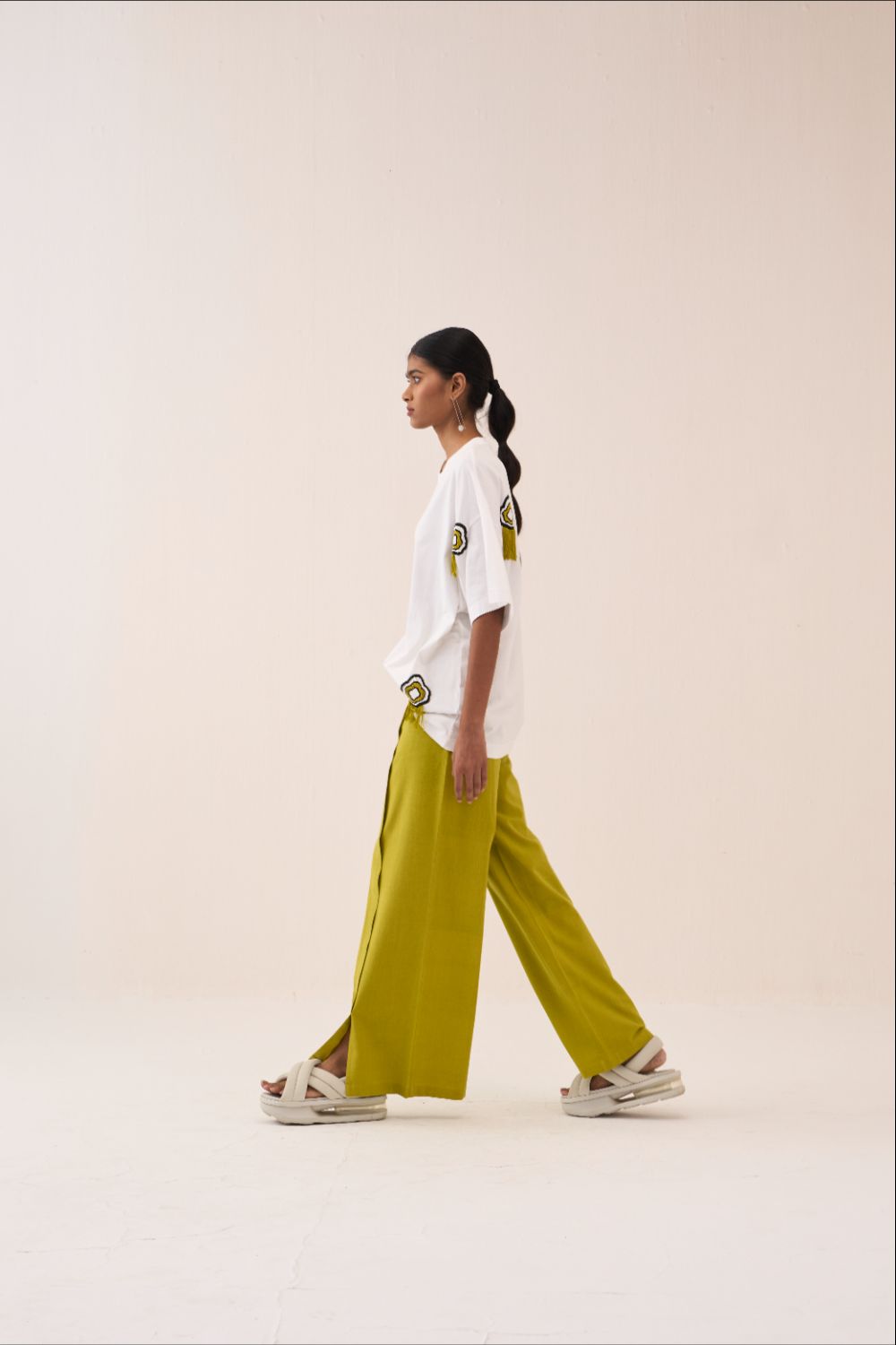 Clever cuts, asymmetric patterns, a neutral palette and simplicity of geometric details form the core aesthetic of the brand. Their love for asymmetry and imperfection clearly reflects in their silhouettes and hemlines. The label is a modern mix of conceptual and wearable clothing which defies age bar as the ensembles exude comfort, more so with their signature anti-fit coords.