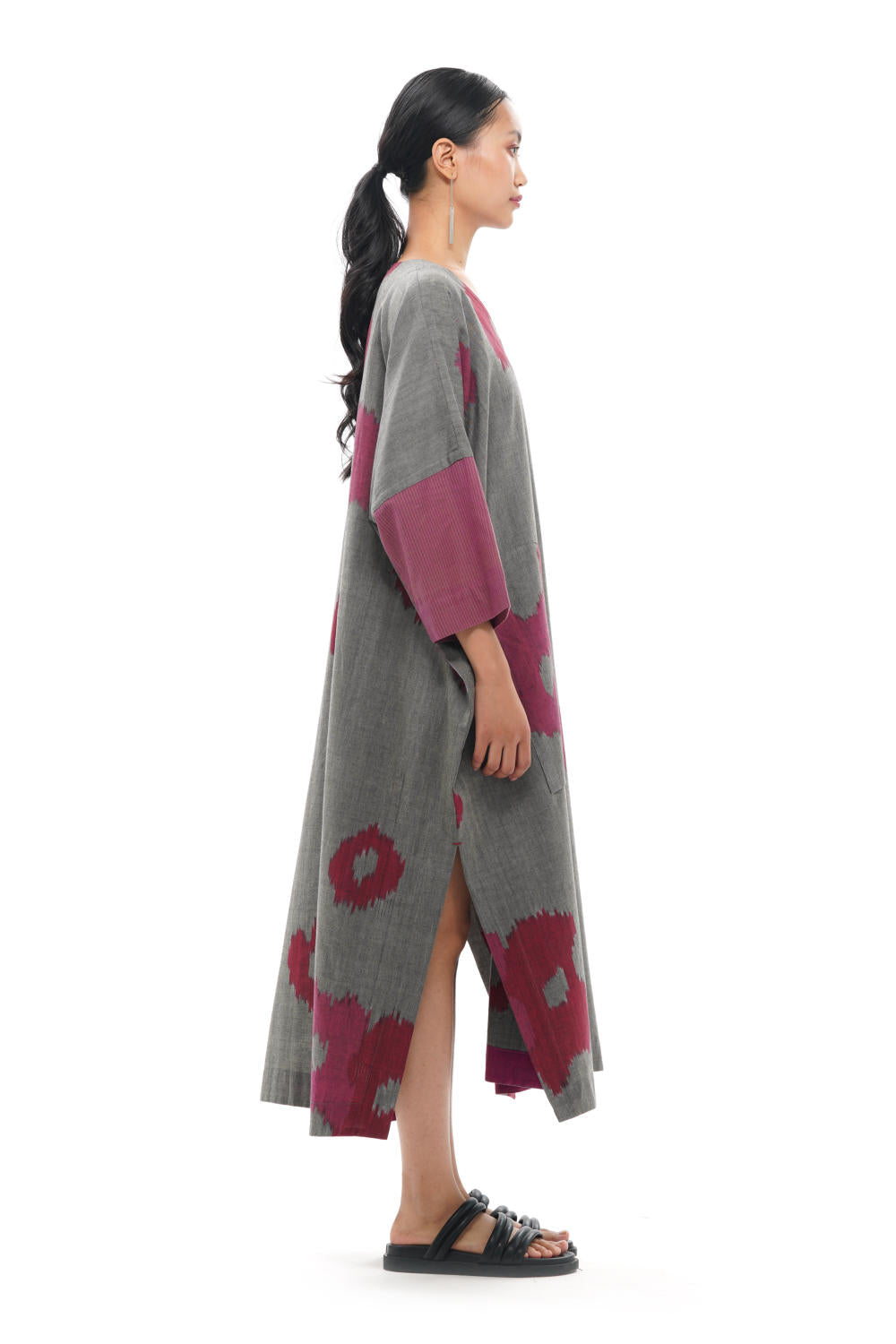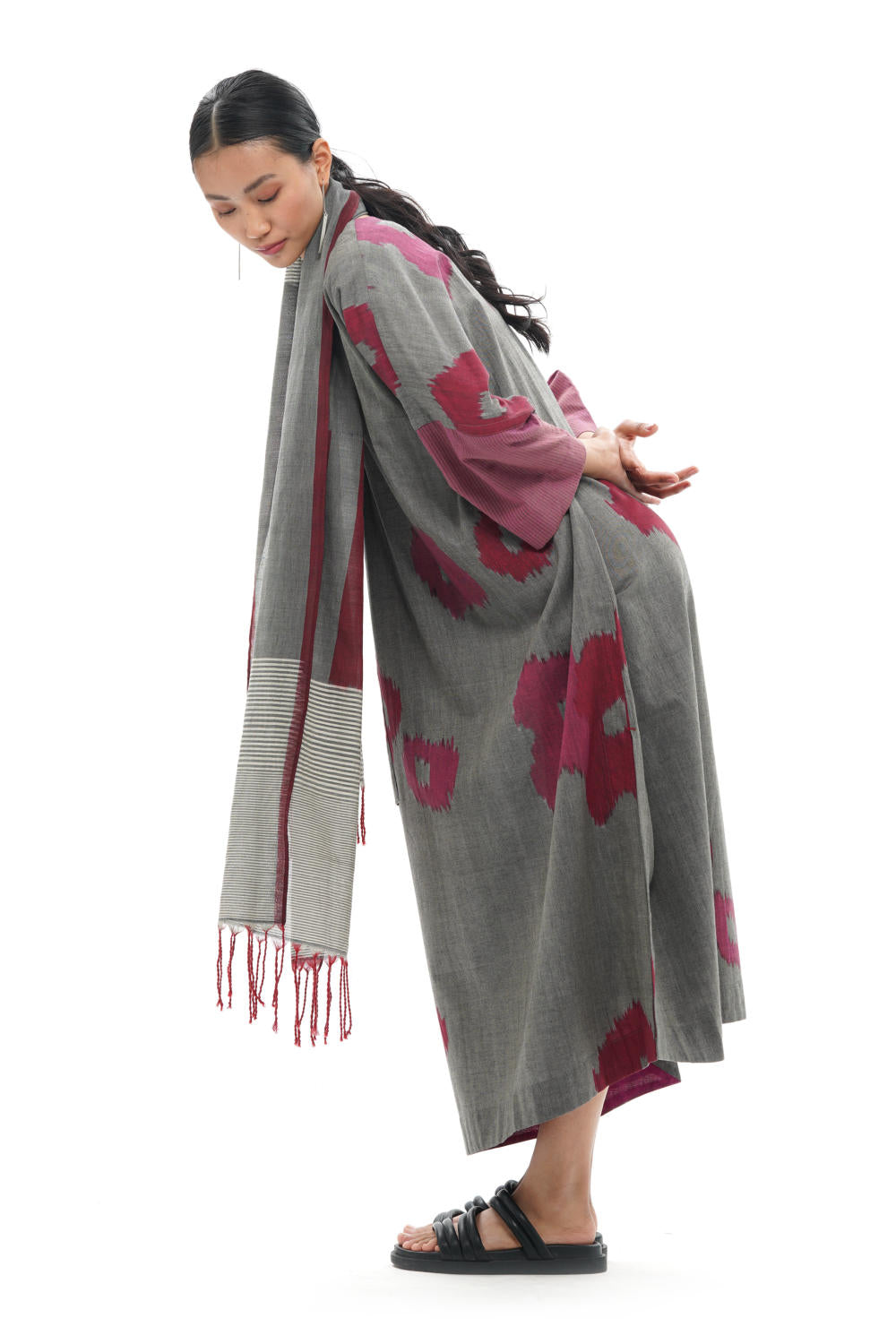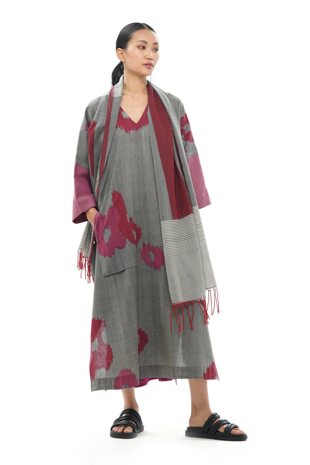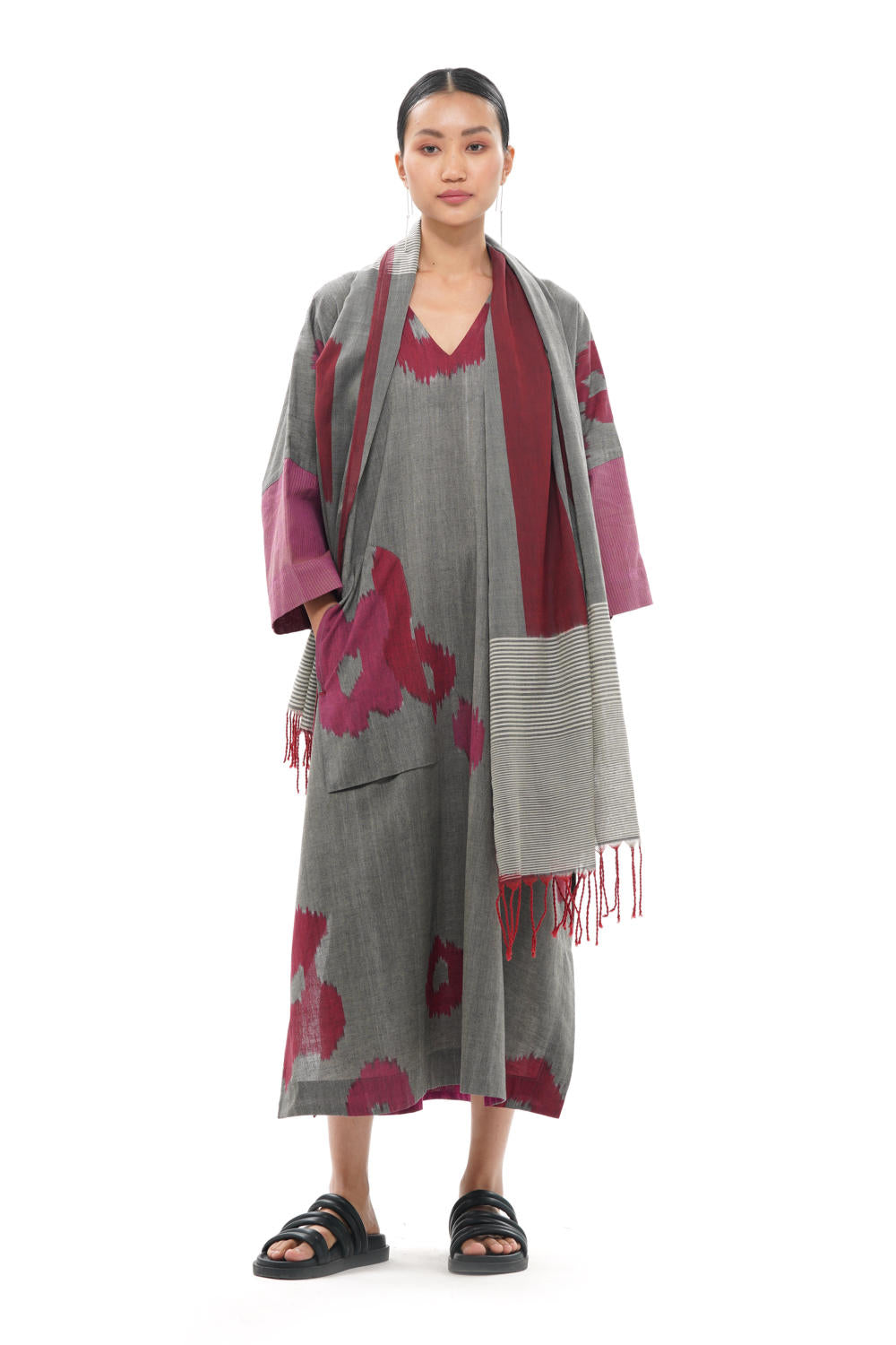 All the products created by Translate are handwoven and handcrafted. Hence, subtle variations in color, texture, and finish are the signature of the human hand.The pattern placement may vary as each garment is cut separately.