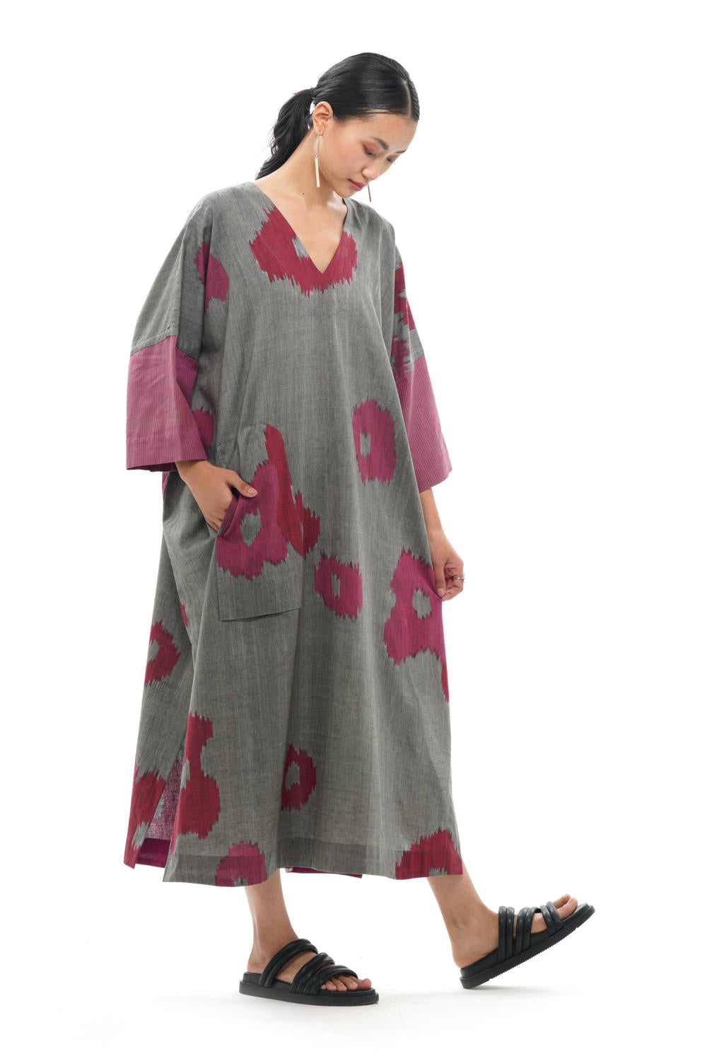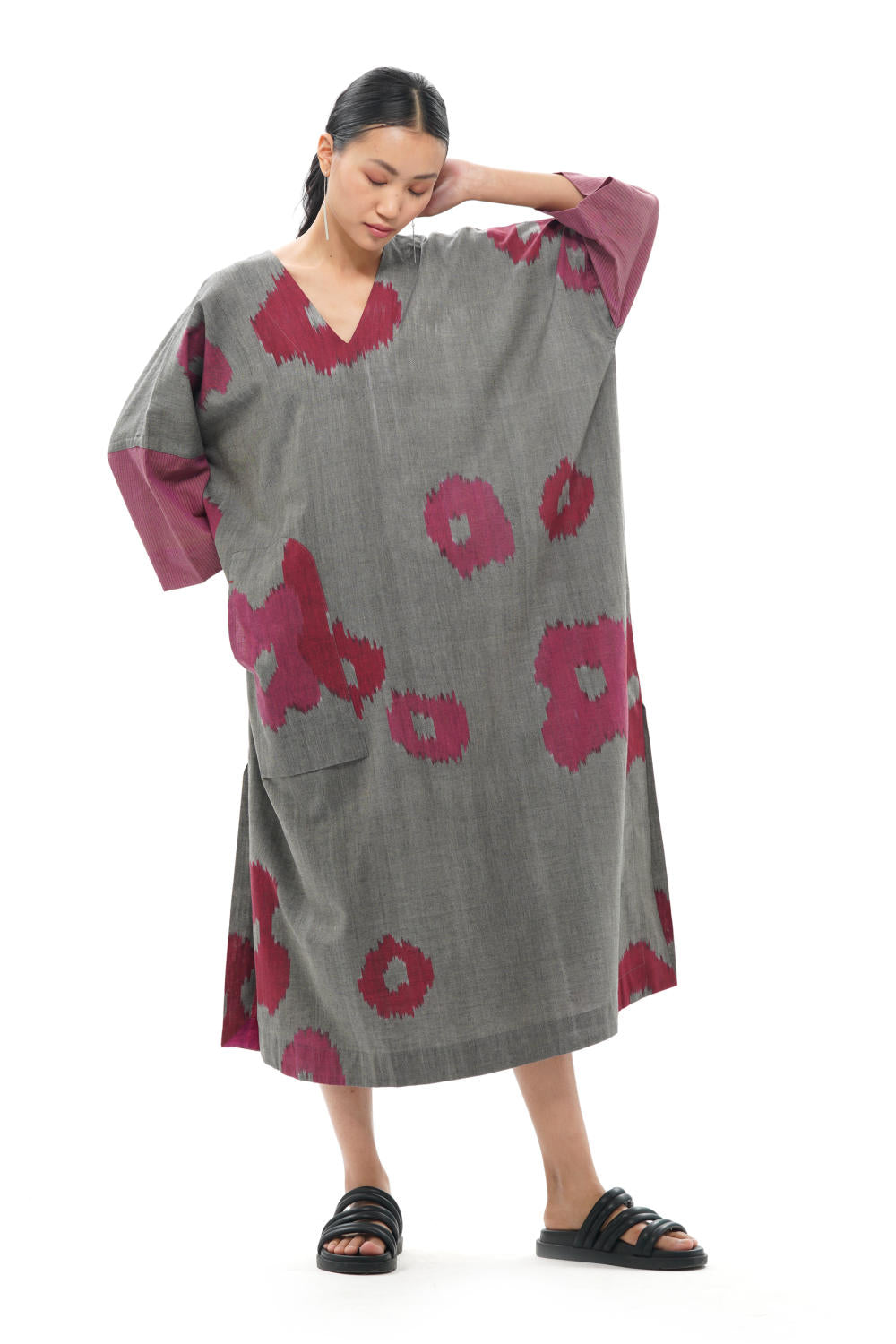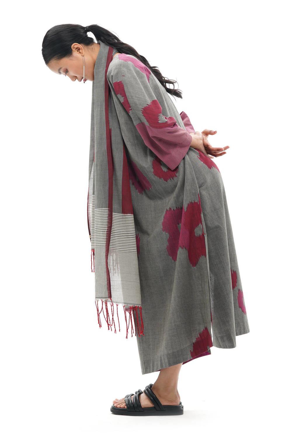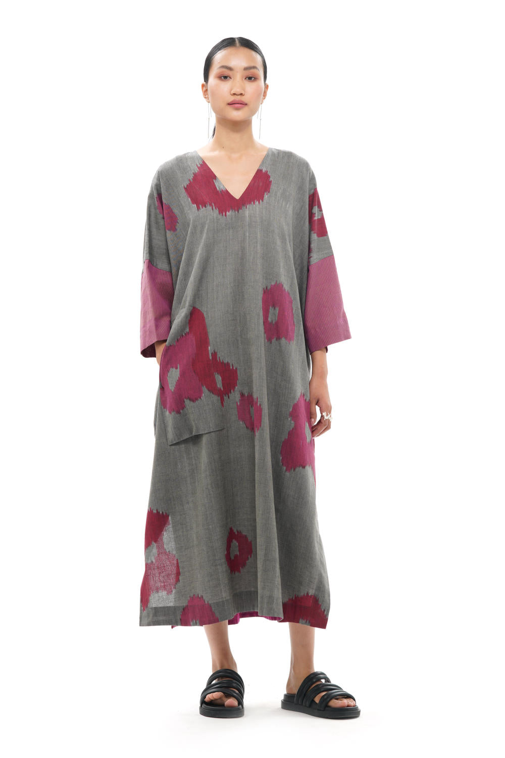 All the products created by Translate are handwoven and handcrafted. Hence, subtle variations in color, texture, and finish are the signature of the human hand.The pattern placement may vary as each garment is cut separately.